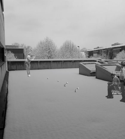 Les premiers montages montrent quels sont les espaces pouvant être utilisés temporairement pour la pratique d'un sport. Le lieu idéale choisit par notre groupe fut le toit en pente de l'amphithéâtre, un espace déjà utiliser pour plusieurs activités: expositions, détente et espace de travail complémentaire.